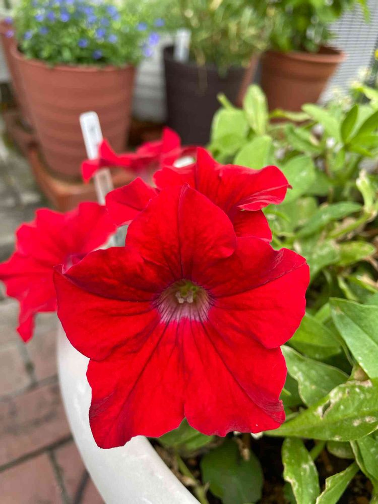 「燃えるような赤」というのは、こういう色を言うのかな?サフィニア シャインレッドin35℃。