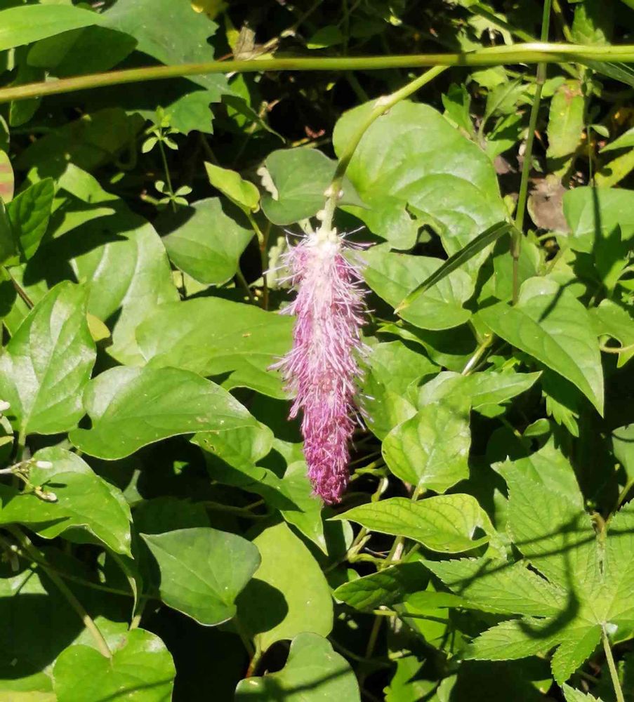 夏から秋にたぬきの尻尾のような形のピンク色の花が咲きます‥