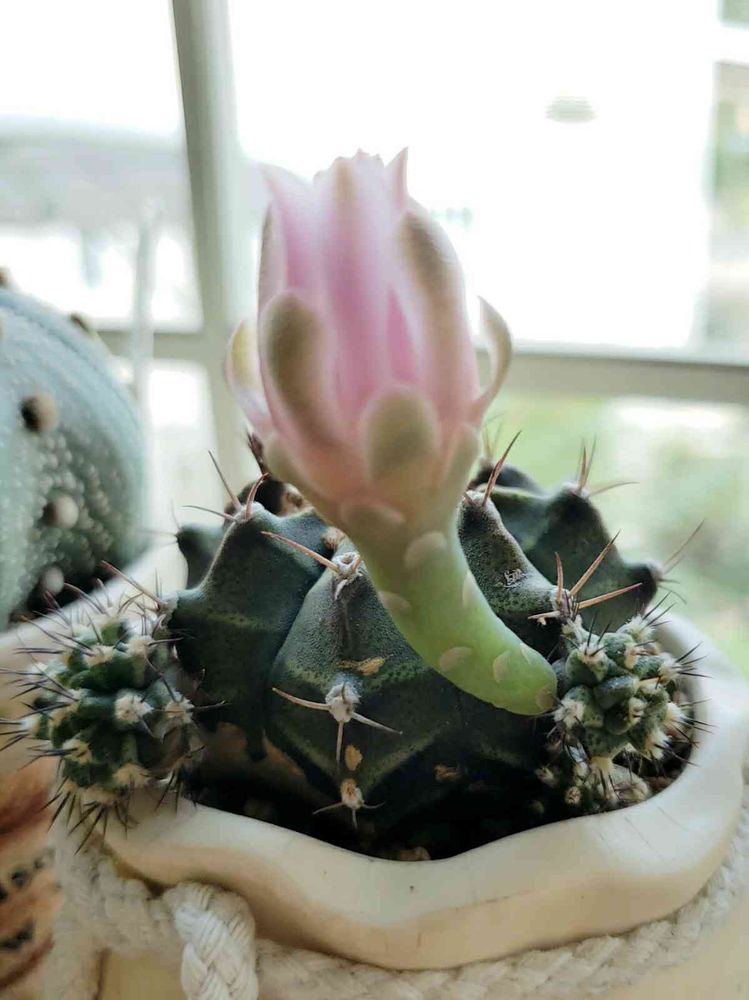 こんなチビ🌵ちゃんから花が咲くなんて思っていなかったので、ビックリです。😆💦