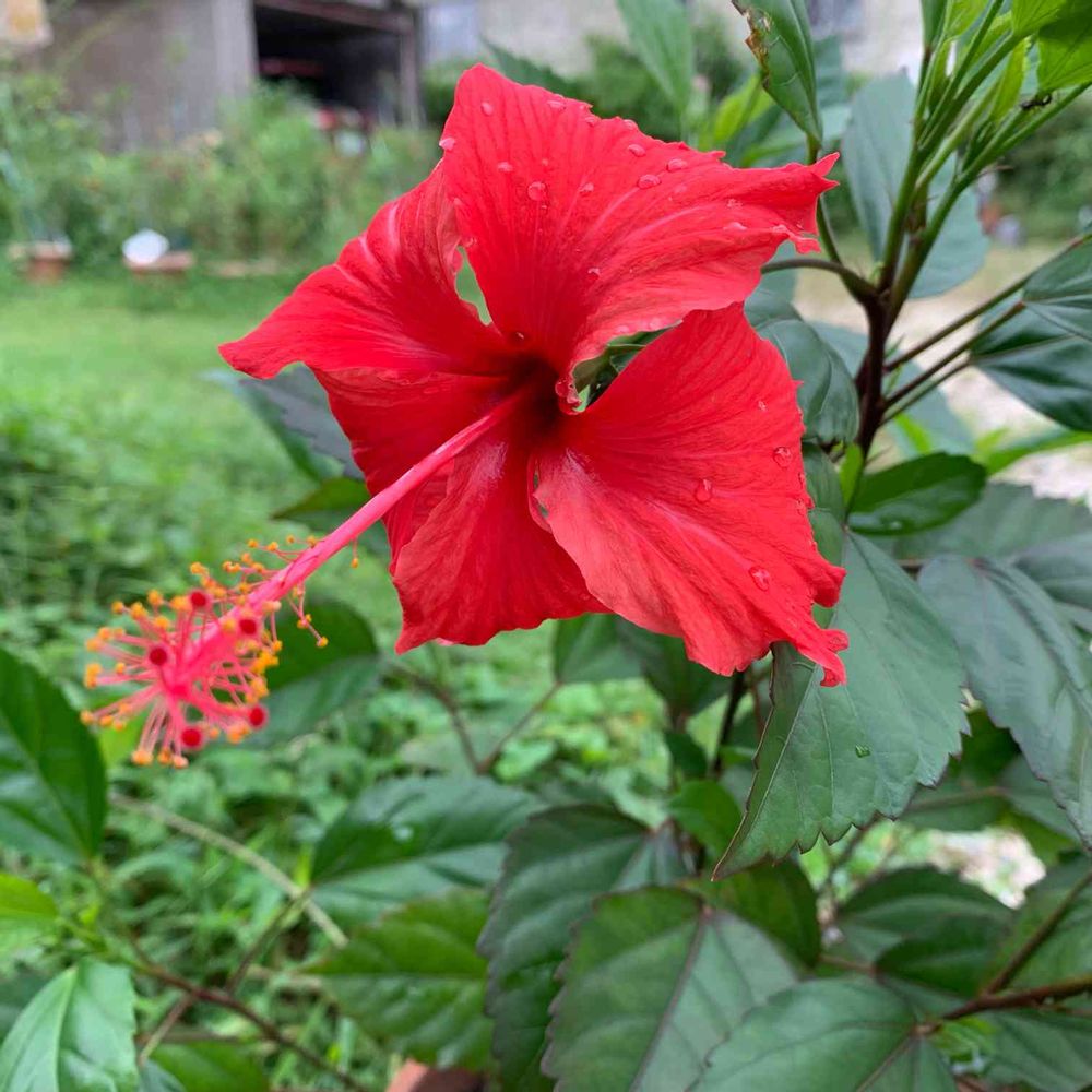 やっと涼しくなり、真っ赤なハイビスカスが咲きました❣️