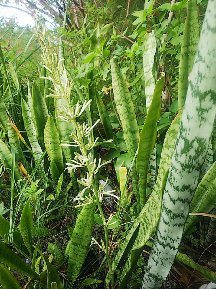 沖縄はサンスベリア 野生化しているのですね🌿地から生えているのは初めて見ました🐸この可憐な白いお花と蕾がサンスベリアの花なのでしょうか✨😲✨