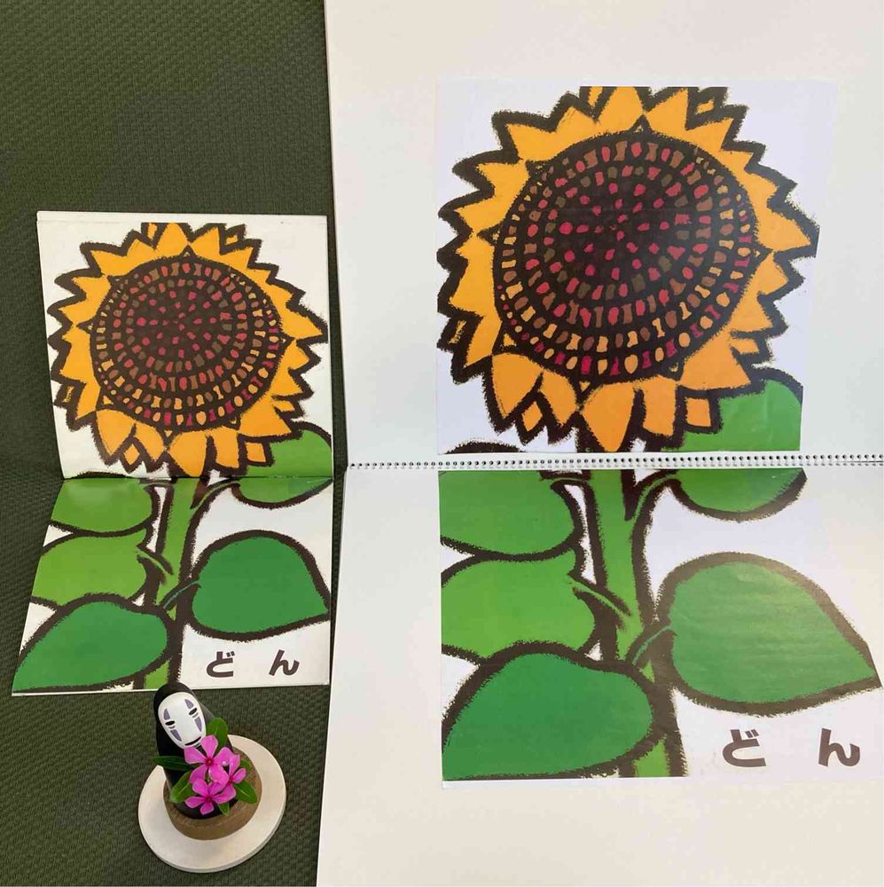 和歌山静子さんのダイナミックなひまわりを、小さな絵本から大きなスケッチブックに📚