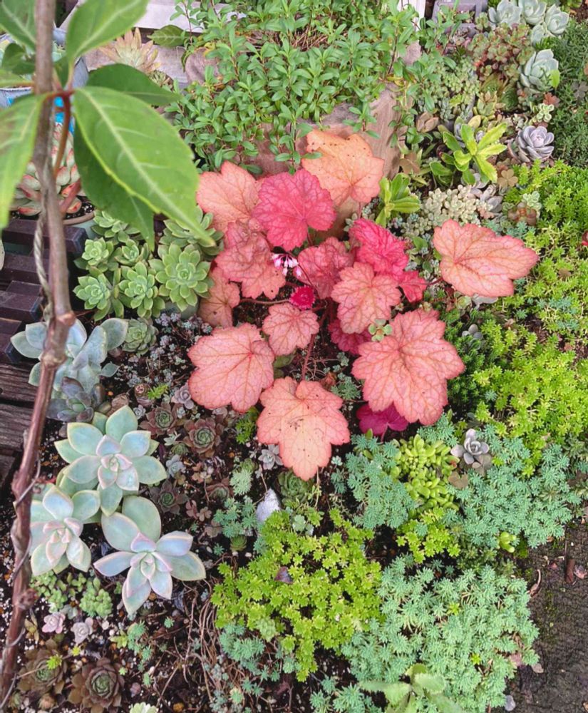 セダムの中にヒューケラ映えますね💕