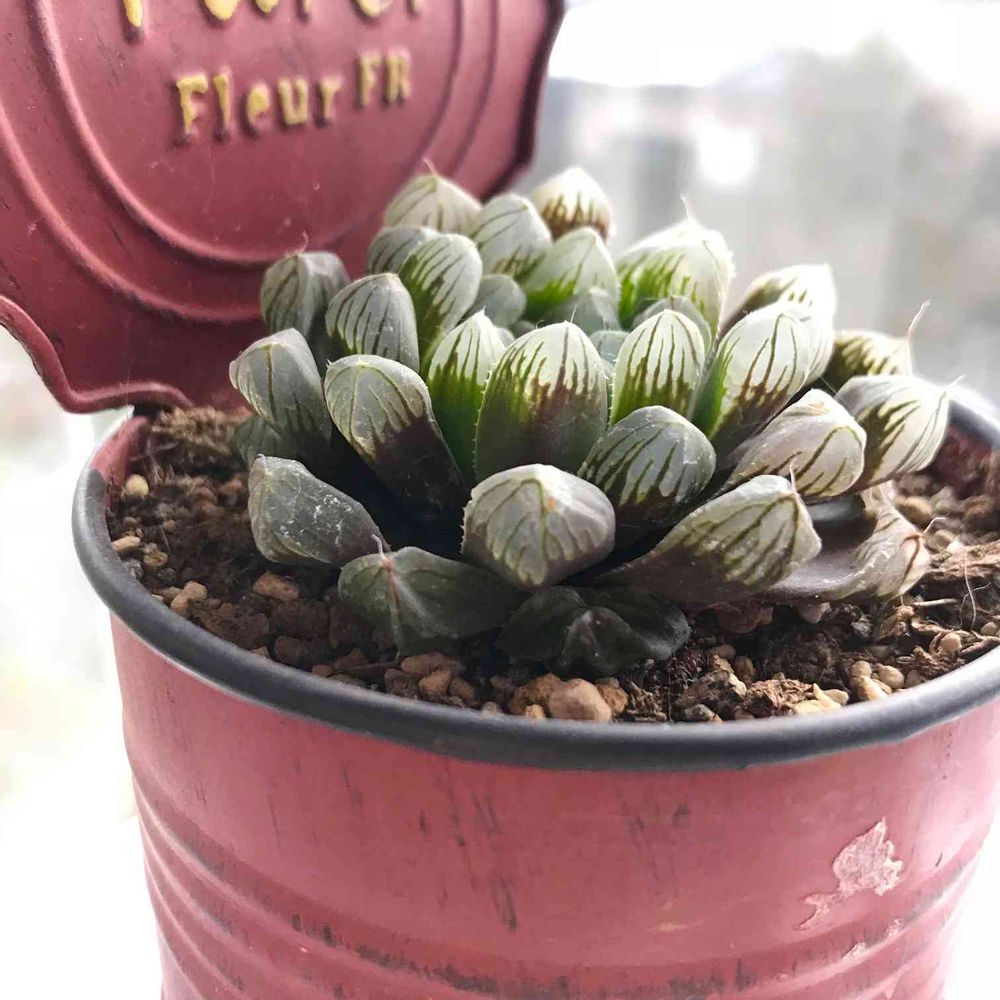 ここ数日で、急に興味がわいたハオさん!行きつけの園芸屋さんに確かあったはずと思い、仕事帰りに行くと、無い😵諦めきれず店員さんに聞くと、この鉢に植えられてるのがラストですと。棚の奥にひっそりといました🤗もちろん、ください!と即答(o^^o)名前は分からないそうだけど、大事にするよー!こんなに急に興味が湧くもんなんだなー。おそるべし!多肉ワールド💕
