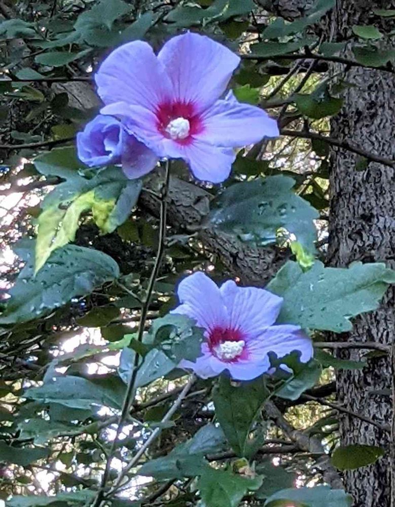 お天気が良かった今朝、木槿ブルーバードが明るく咲いていました。その後は何だか分からないお天気になってしまいましたが…。