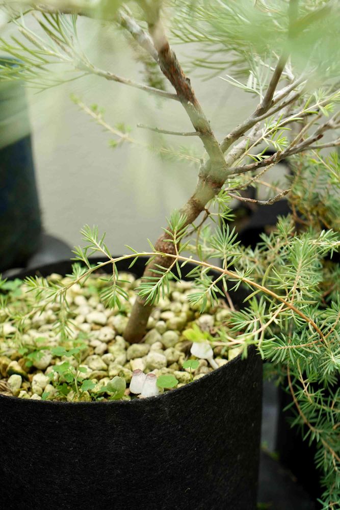 あまりに雨が続いて☔️グレビレアのクィーンカーペットにきのこ生えてた🍄