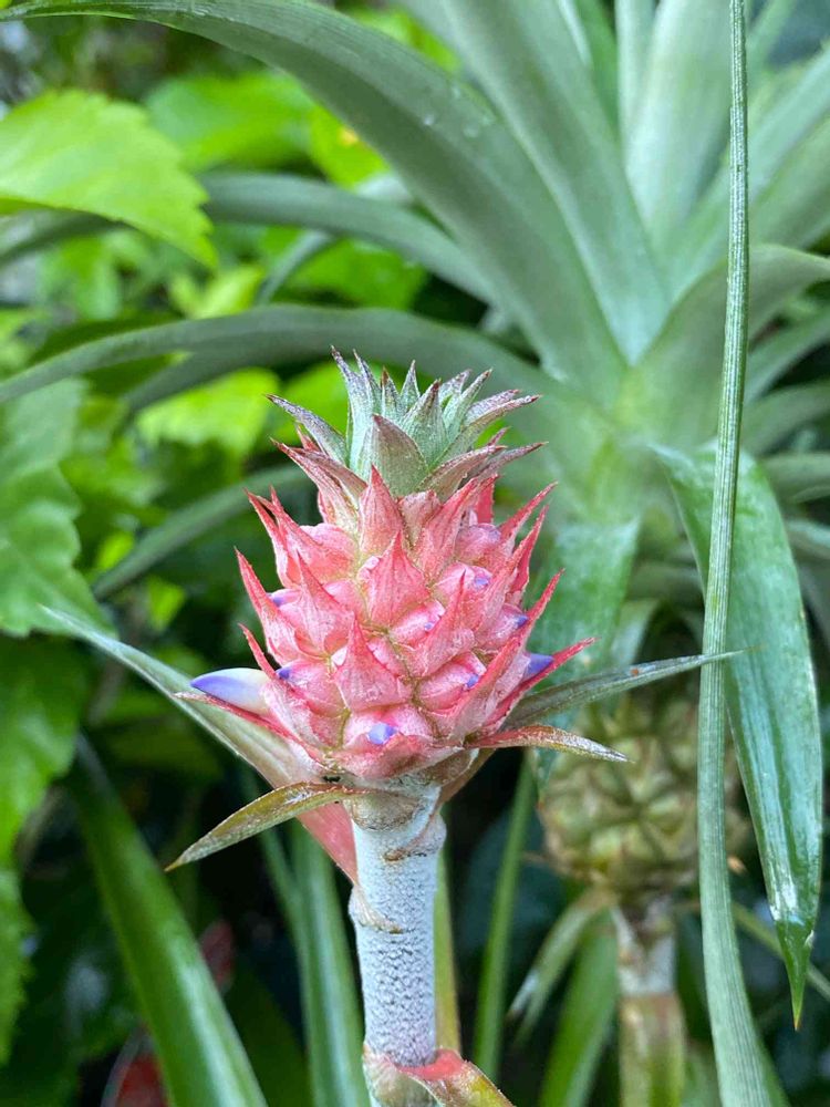 パイナップルから紫色のお花がのぞいてる〜😍こんなふうに咲くんですね✨💕
