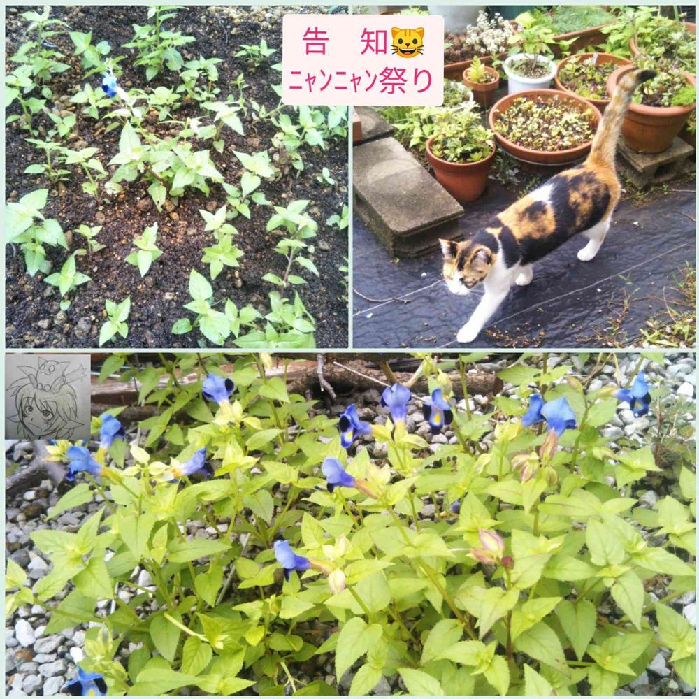 右上の三毛猫ママは、私が庭に出ている間ずっと付いて回ってました😅