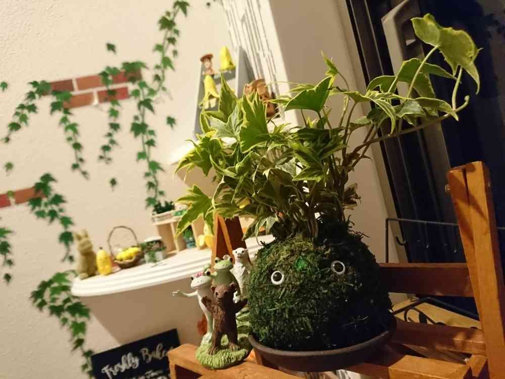 好きな植物を選んで、苔玉を作り、常滑焼きの小皿に乗せて500円👛