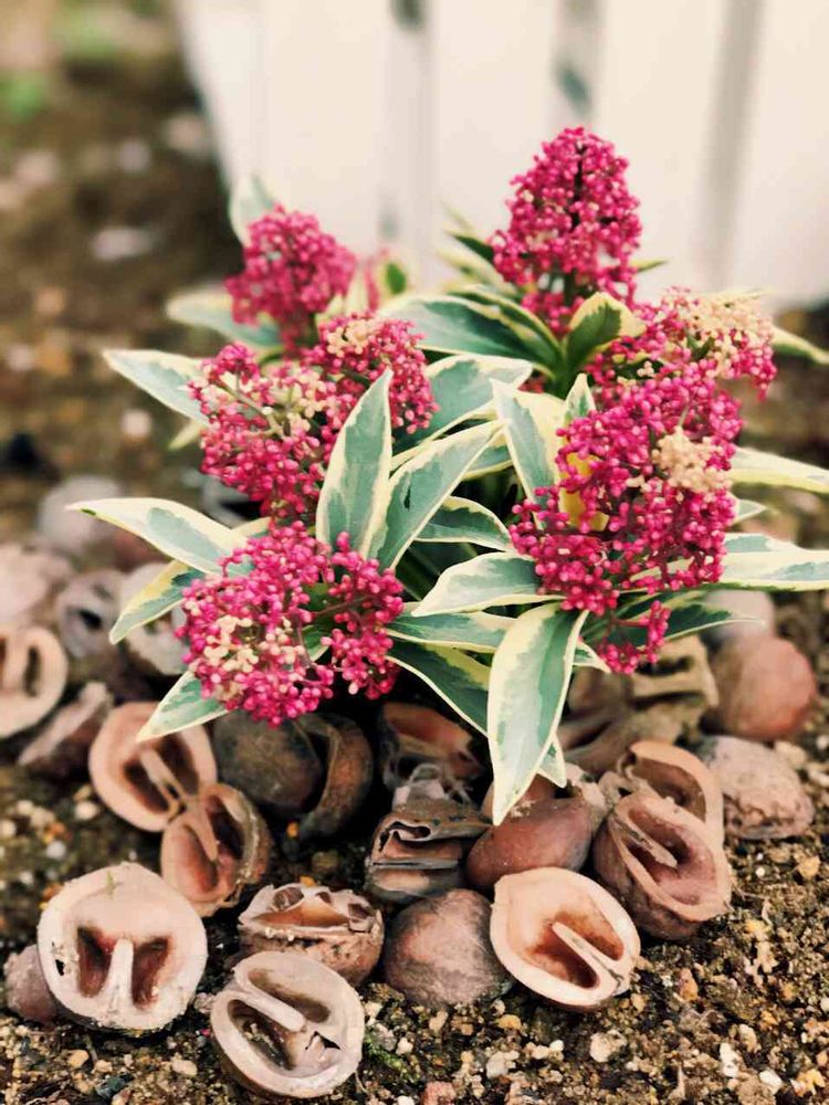 小さな庭,スキミア マジックマルロー,赤い花の投稿画像