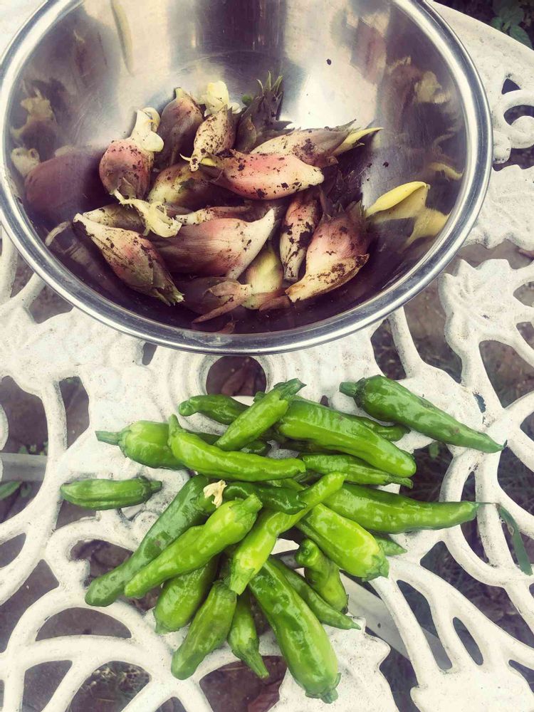 長雨が続いて、茗荷ががちょっと採れるようになりました。シシトウ初収穫です。byミニミニ農園