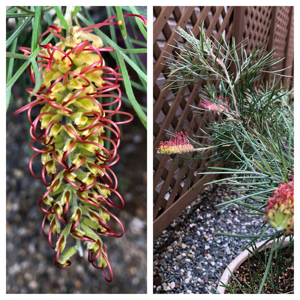 なんじゃ、この素敵な植物わあーー😍っと思ったらグレビレアの一種なんですねー🌱美しい花咲かせてますわー💐
