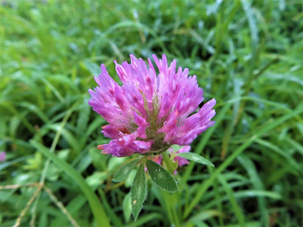 名前に近い色の「アカツメグサ(赤詰草)」が綺麗に咲いていました。 パチリ