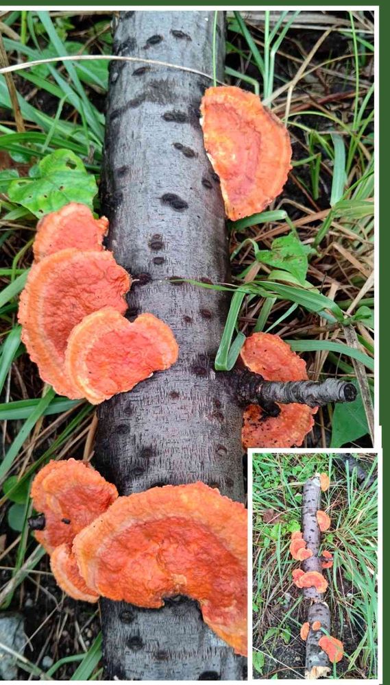 サルノコシカケぽいですが色が、派手めですね(* >ω<)違う種類かな