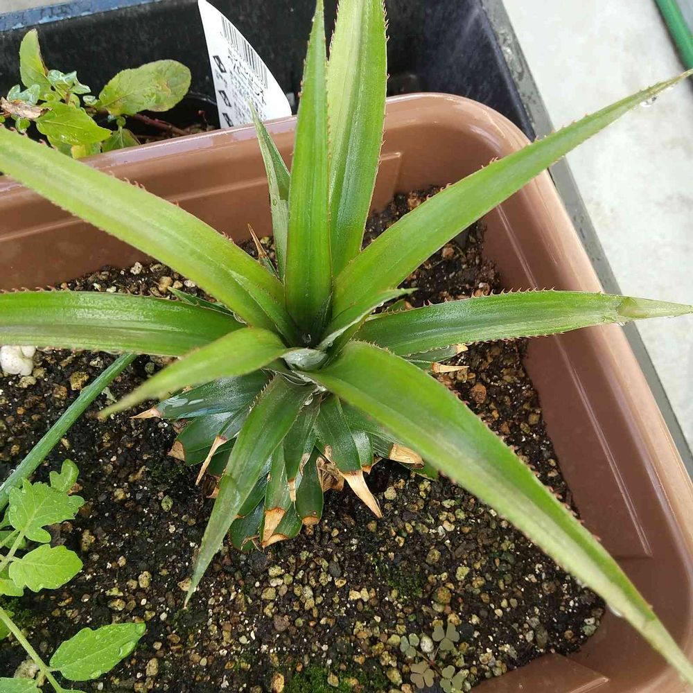台湾パイナップル、食べ終わったあと葉っぱを植えてみました。