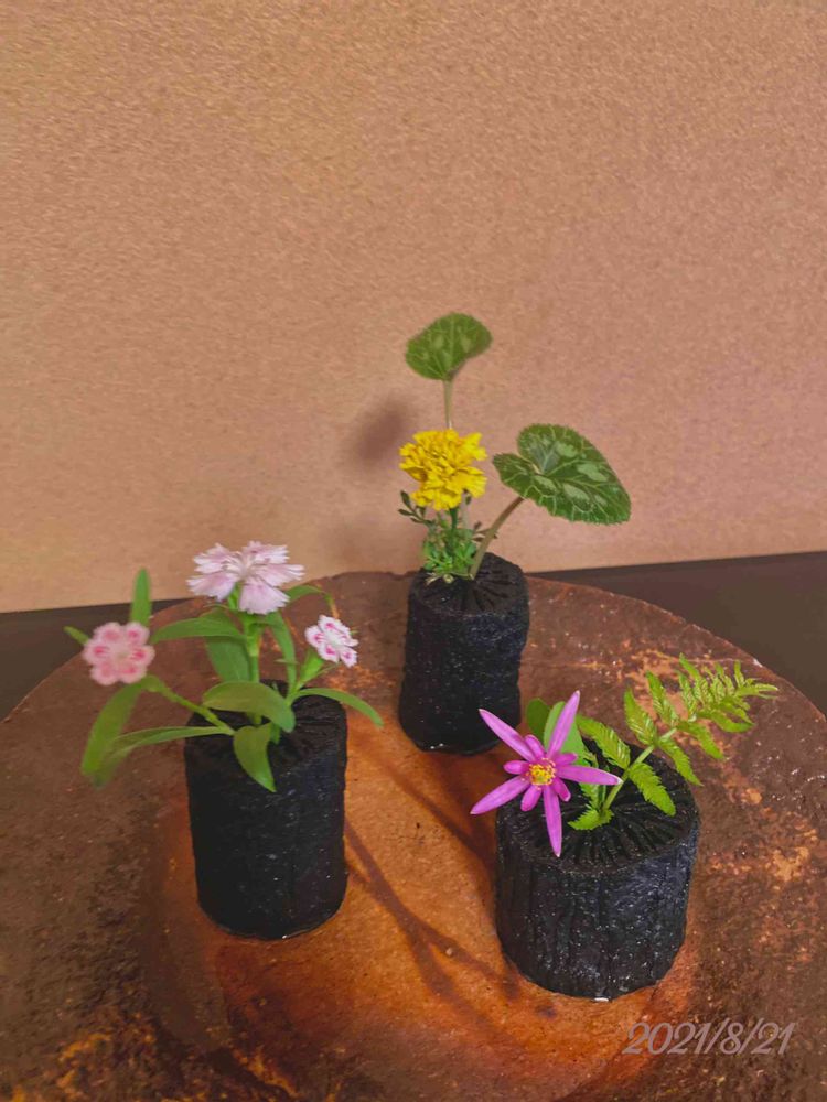 お花のチョイスも素敵なのでしょうが、炭に挿すお花とってもお洒落です✨✨