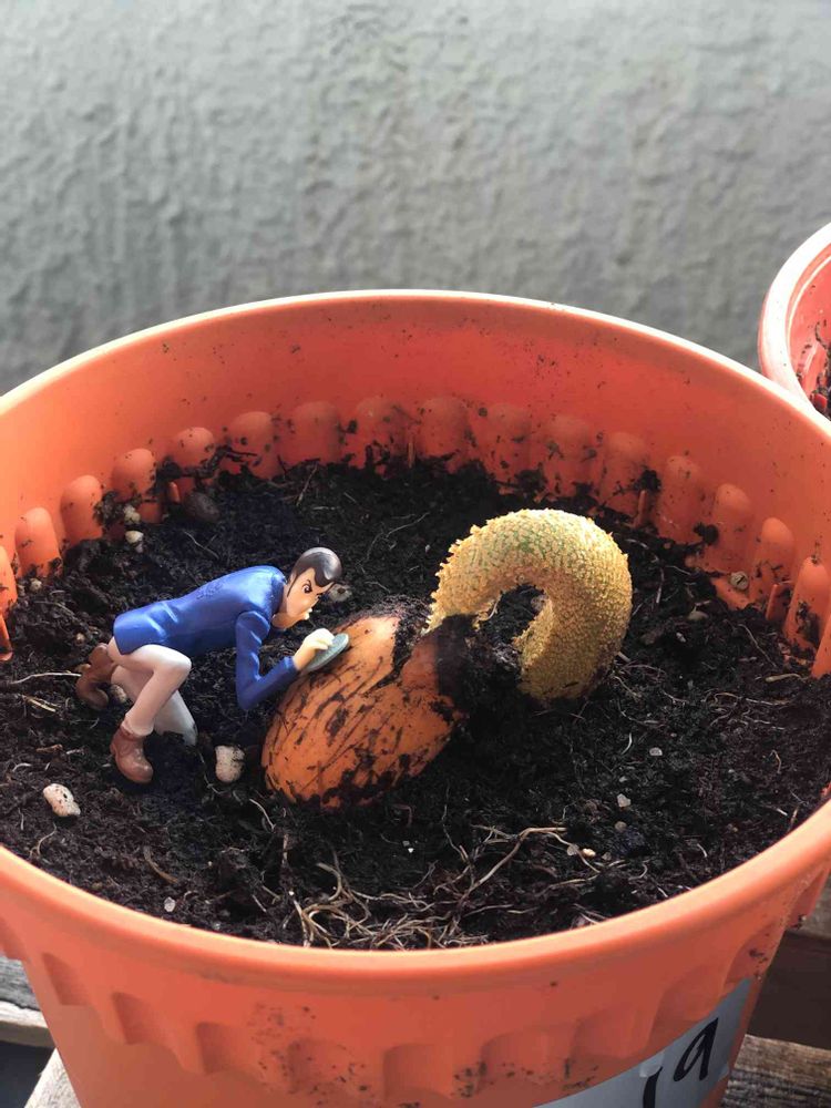 先日食したドリアンの種を冗談半分で植えたら発芽しちゃいました〜😅
