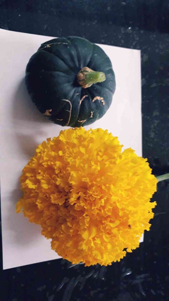 アメリカマリーゴールドの花と坊っちゃん南瓜です🤩