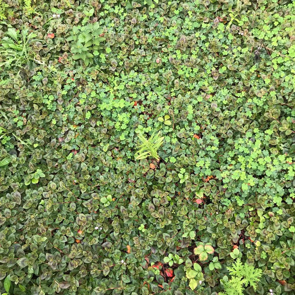 私の考える理想的なグランドカバー状態になってる一角。他のエリアと違って、雑草オオアレチノギクorヒメムカシヨモギが生えてきておらず、グランドカバーの効能(雑草防止)を見事に実現。