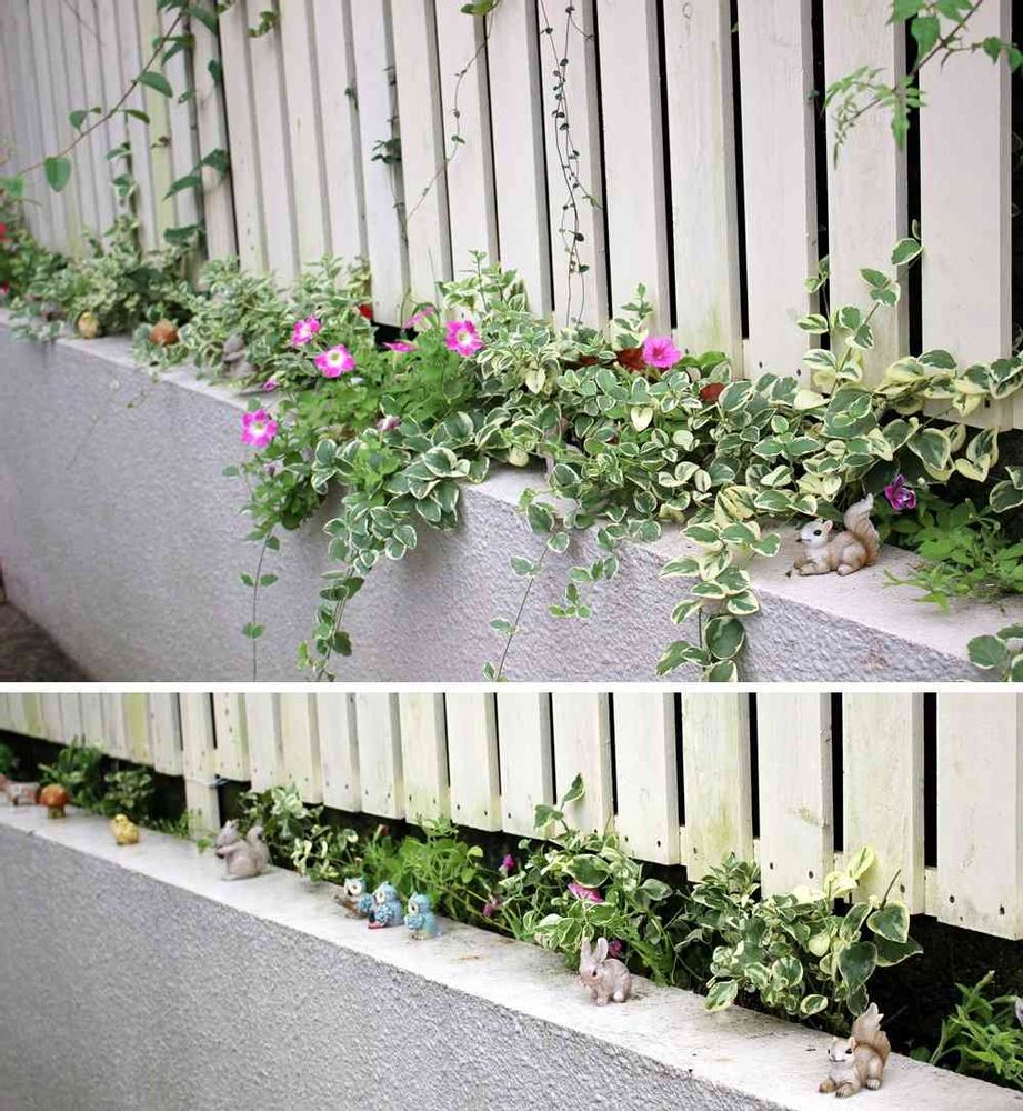 白い木のフェンスから可愛い草花がいい感じですネ💖