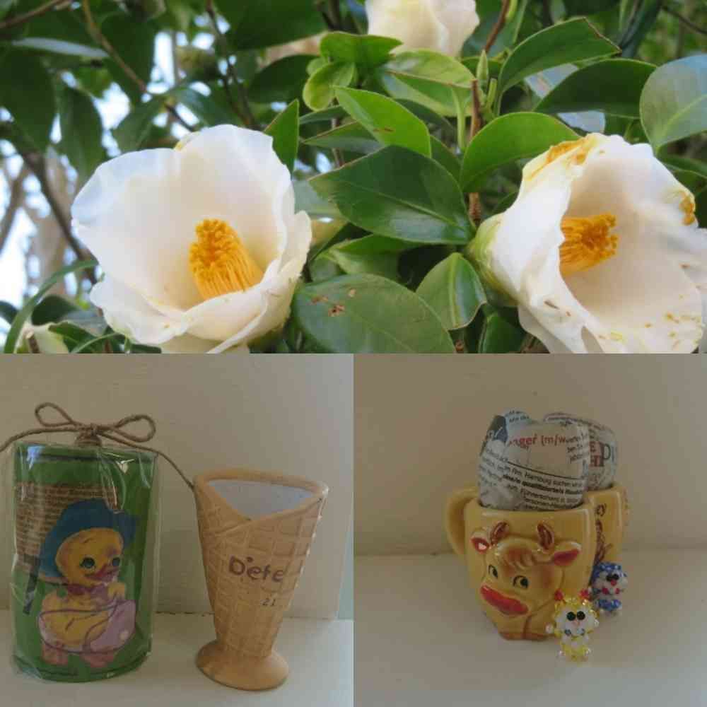 アヒルのリメ缶、アイスのコーン❔の鉢(穴は開いていません。)