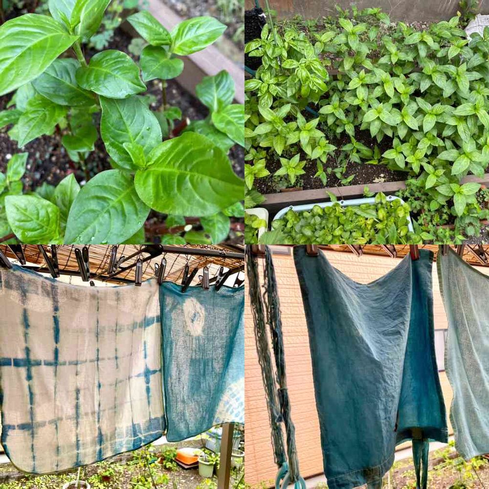 去年、いただいたタデアイの挿し芽で種を採り、今年まあまあ育ったので、生葉染めに挑戦❗️