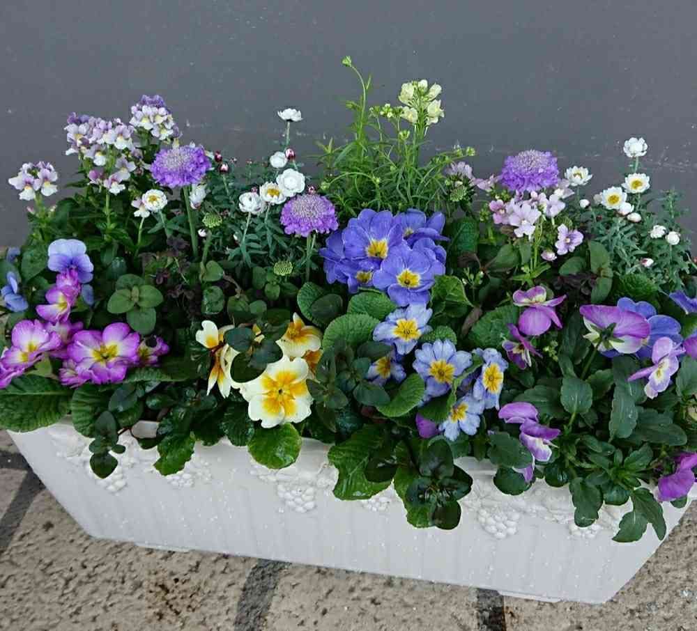 爽やかな素敵な寄せ植えですね💜🌿💙🌿