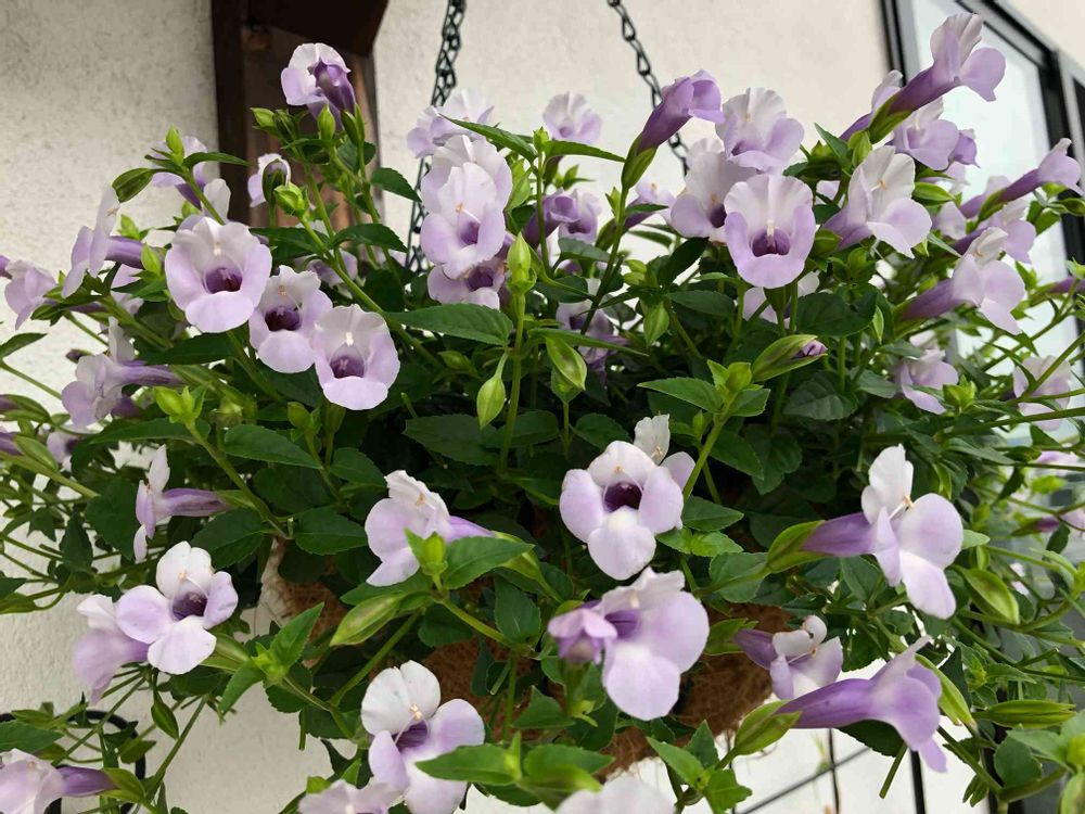 今年はPWさんのスーパートレニア・カタリーナ・アイスリバー🤍をハンギングで育てています😊🎶