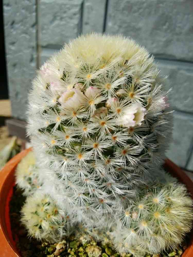 この子はマミラリヤ属という種類なので、棘はあまり鋭くなく、お花はpicのような小さなものが、うまく良くとハチマキ状に咲きます。