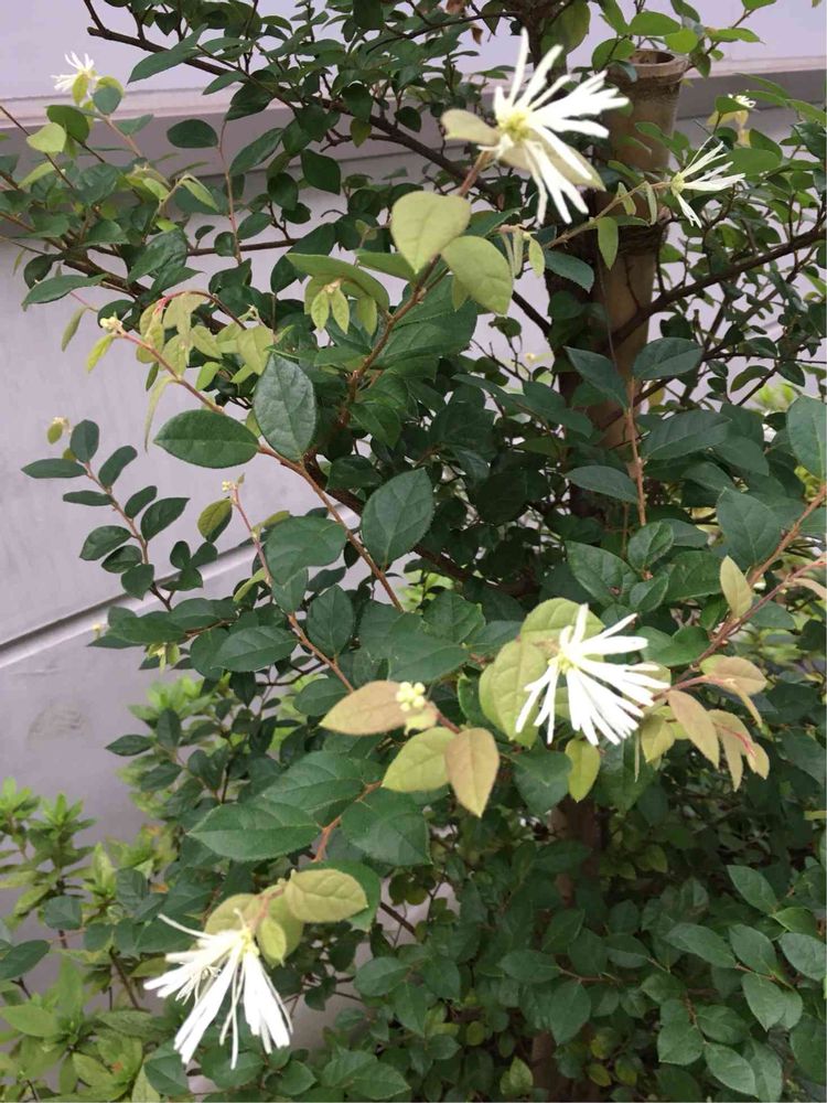 今の時期はたまに、チラッと咲く程度です。春に満開となり、垣根が真っ白に‼️毎日の掃除がたいへん💦