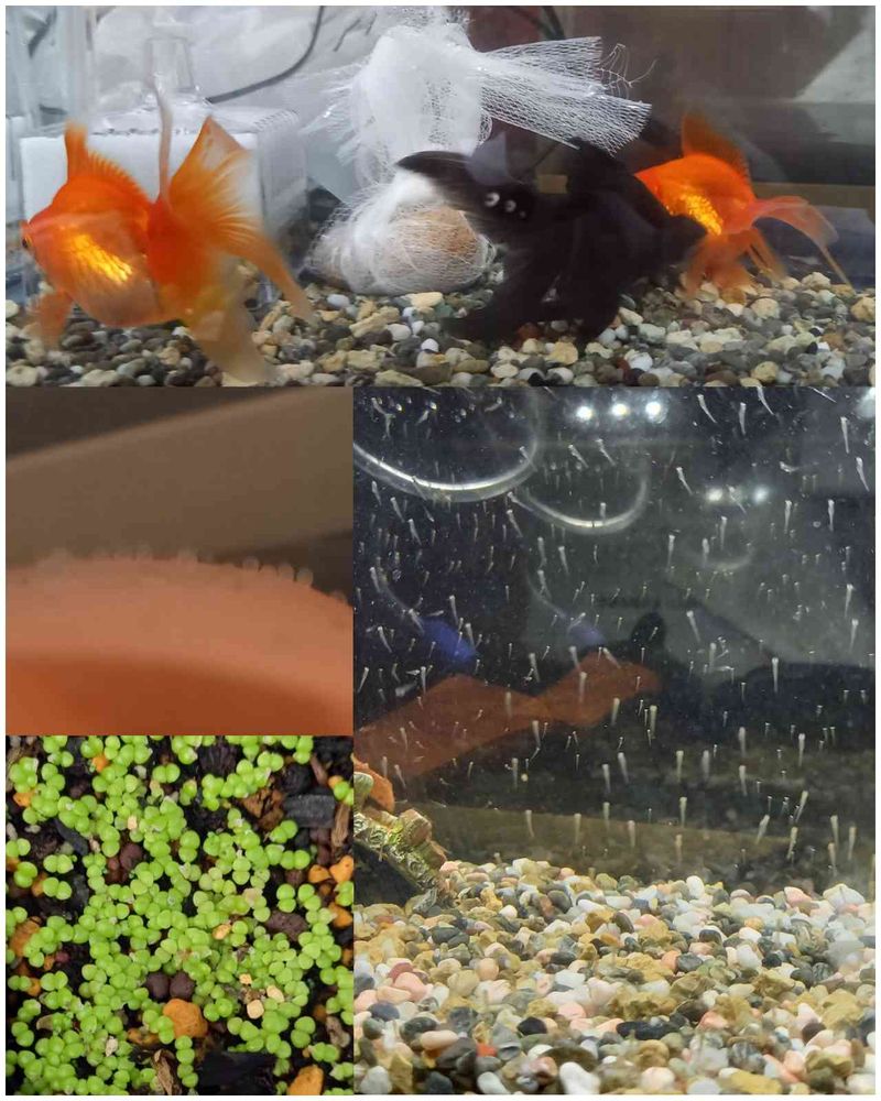 オレンジ🐠がお母さん、出目金がお父さん(だと思う)