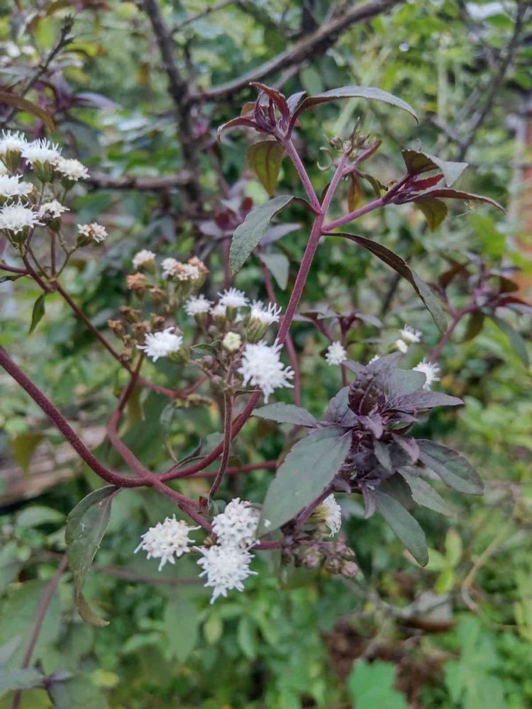 雨が続くなか昔に寄せ植えしたユーパトリウム チョコラータが咲いてます