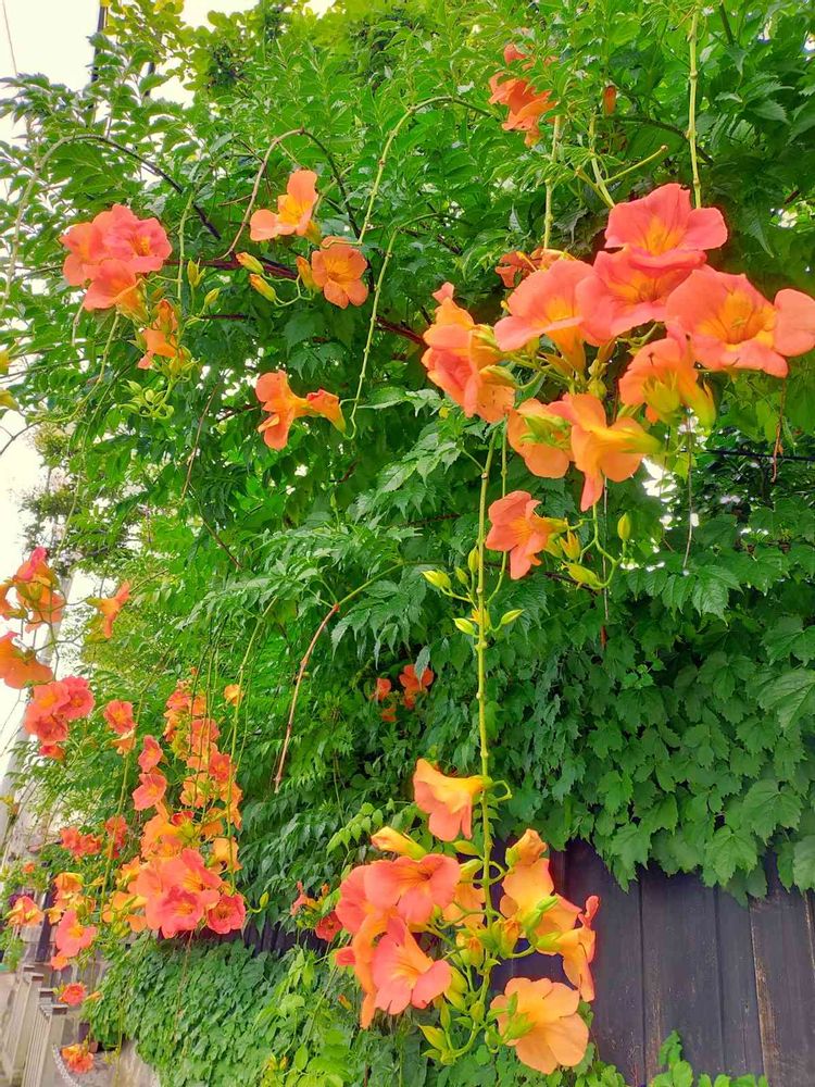 ノウゼンカズラのシャワー✨😍うーん✨スギさんの表現👍素敵〜!🧡🧡🧡まさにそんな感じでした〜👏✨アリガトウ✨