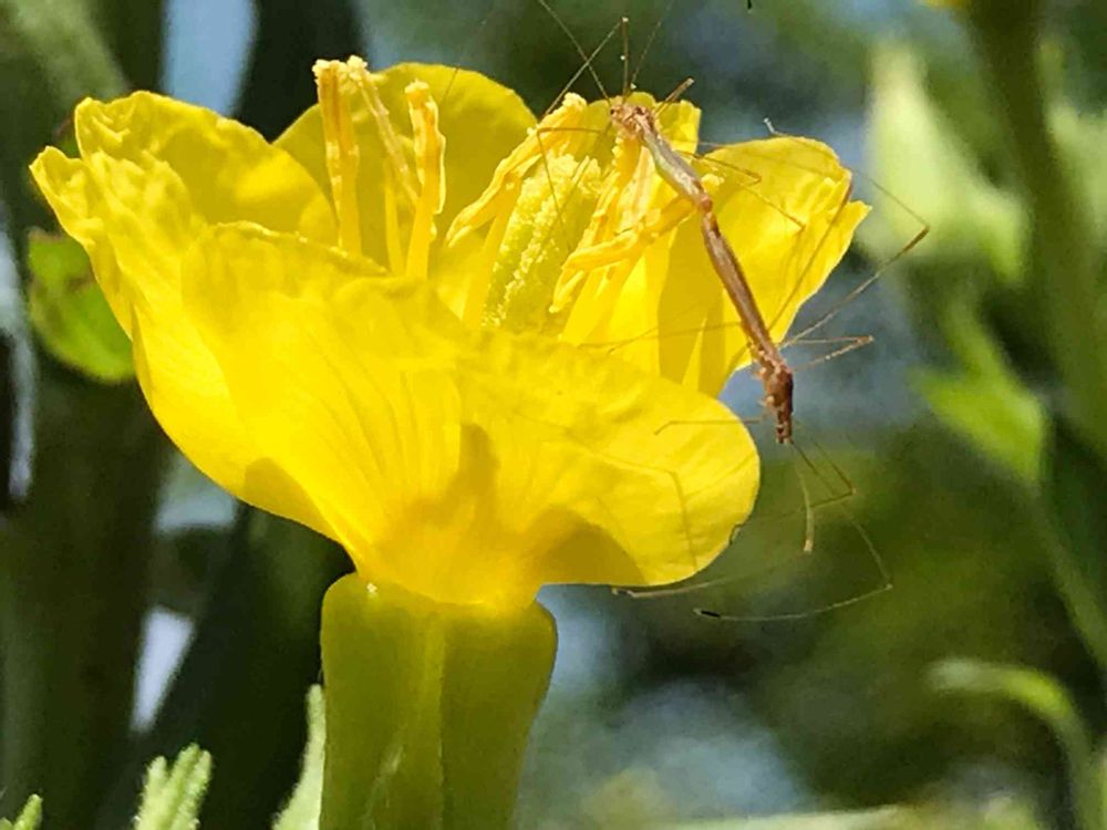 メマツヨイグサの花にか細い虫さんが😳