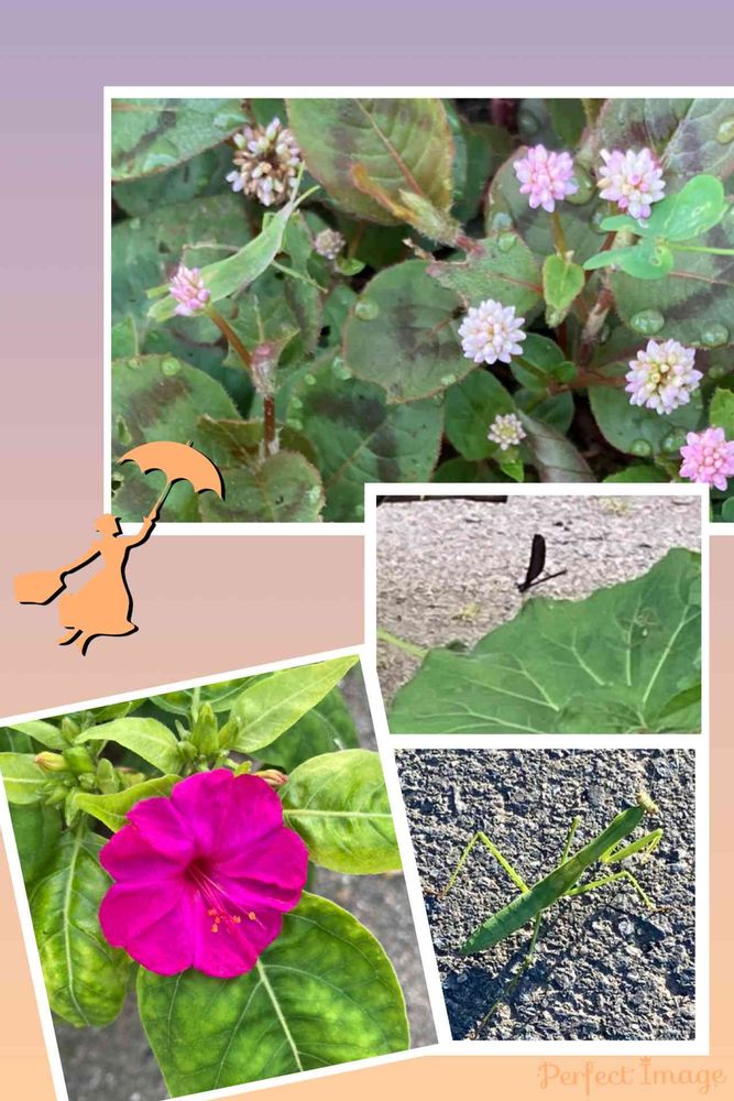 ウォーキングしていると小さなバッタが何匹もいました。車が通る音がして何やら道路を動くものが…良くみるとカマキリさん。今年は、よくハグロトンボがひらひらと飛ぶ姿を見かけました😊
