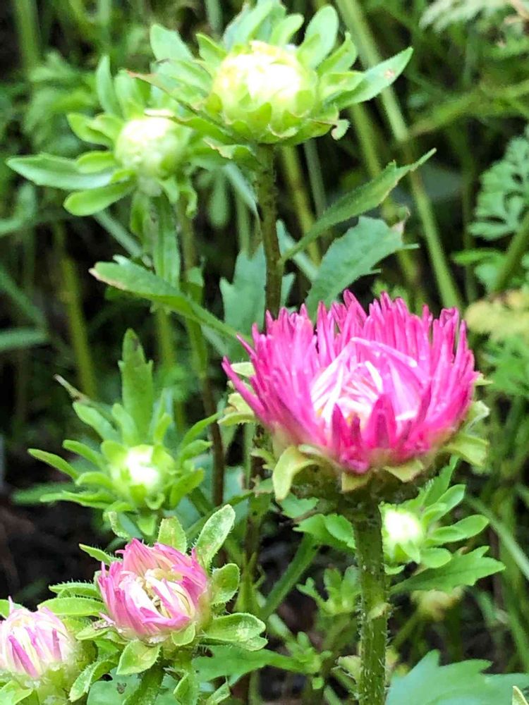 今朝も短時間の豪雨、なかなか花が開きません。先日のアスターもこんな感じ。早く開いたお花が見たいです。