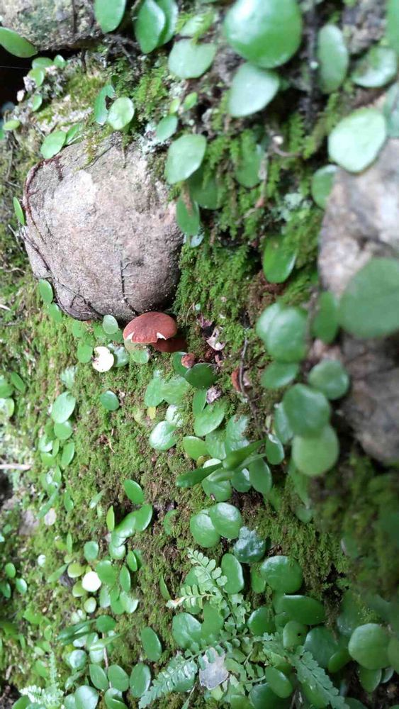 キノコ、マメヅタ、そしてAIに尋ねても「苔」としかわからない苔を写してます(^v^)