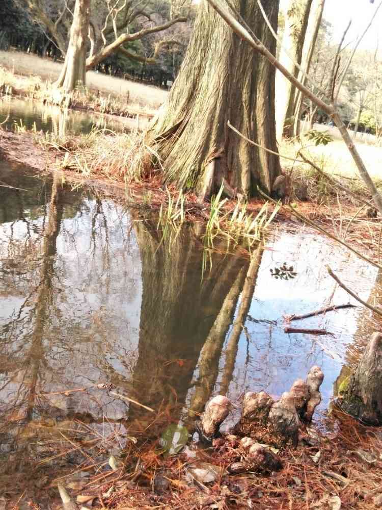六甲山森林植物園で見た、ラクウショウも呼吸根出てました😄