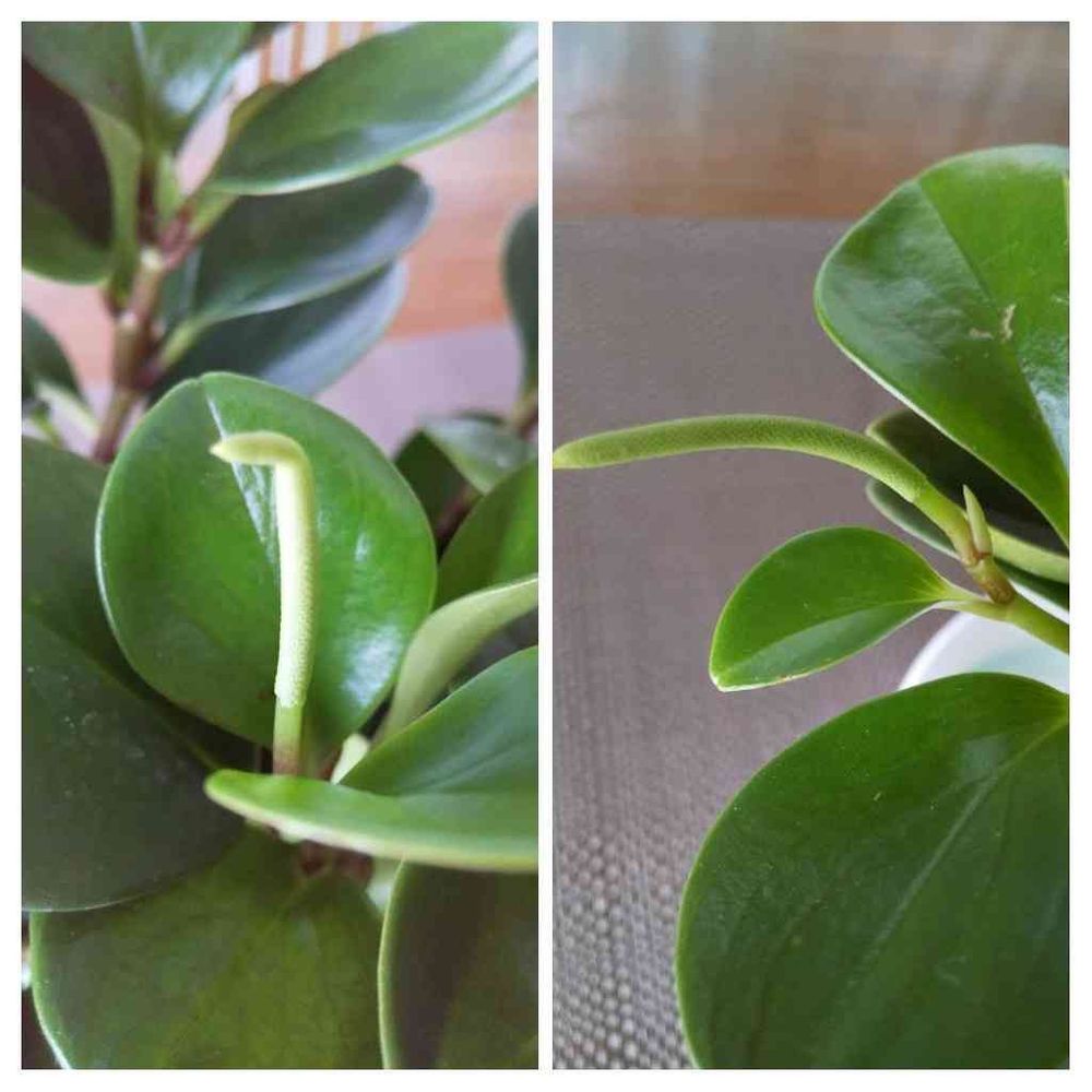 ペペロミアの葉の間から緑の芯のようなのが出てました。