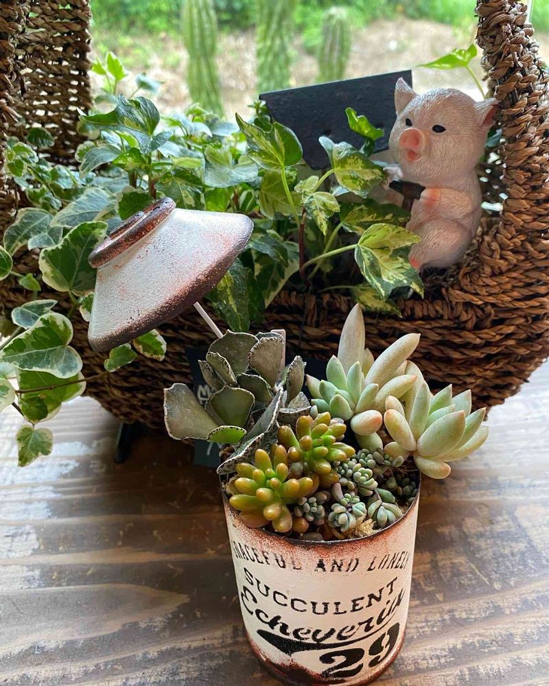 リメ鉢も傘☂️付きで、多肉ちゃんも皆んな可愛い❣️