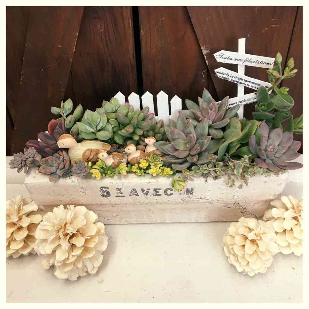 一昨日のリベンジで、カモファミリーが主役の座を狙ってますが・・・(似てるけど、違う寄せ植えで〜〜す💦)