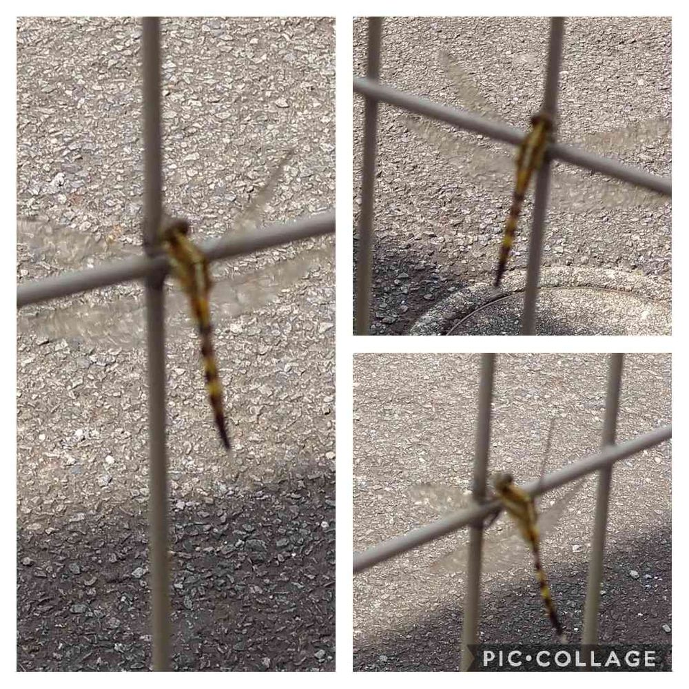 仕事先の施設のフェンスに、ムギワラトンボが🥰🥳