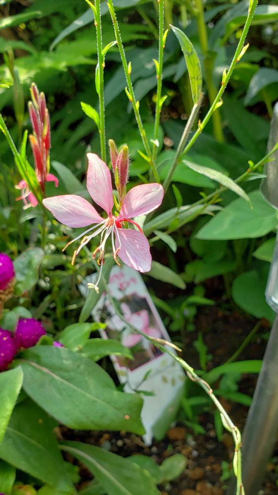 コンパクトガウラ我が家にもあります〜😊普通のよりも咲き始めが遅いものなんでしょーか?咲き始めたの、我が家も最近ですね❤️風に揺れてかわいいですよね💗私は、ヒューケラ花壇に植えましたよ👍