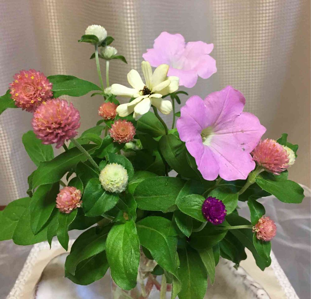 切り戻した千日紅やペチュニアさくらさくらをお水にさしてみました💕🥰