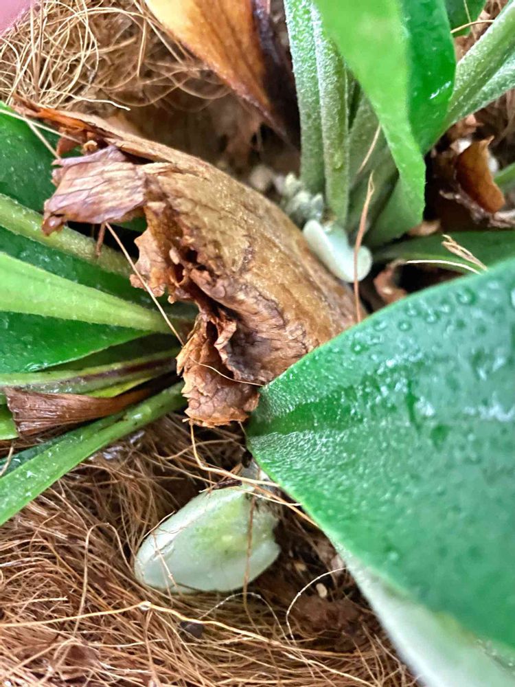 中央に映る枯れた貯水葉の下に、3枚目の貯水葉があります。貯水葉同士が割と近い気もします。