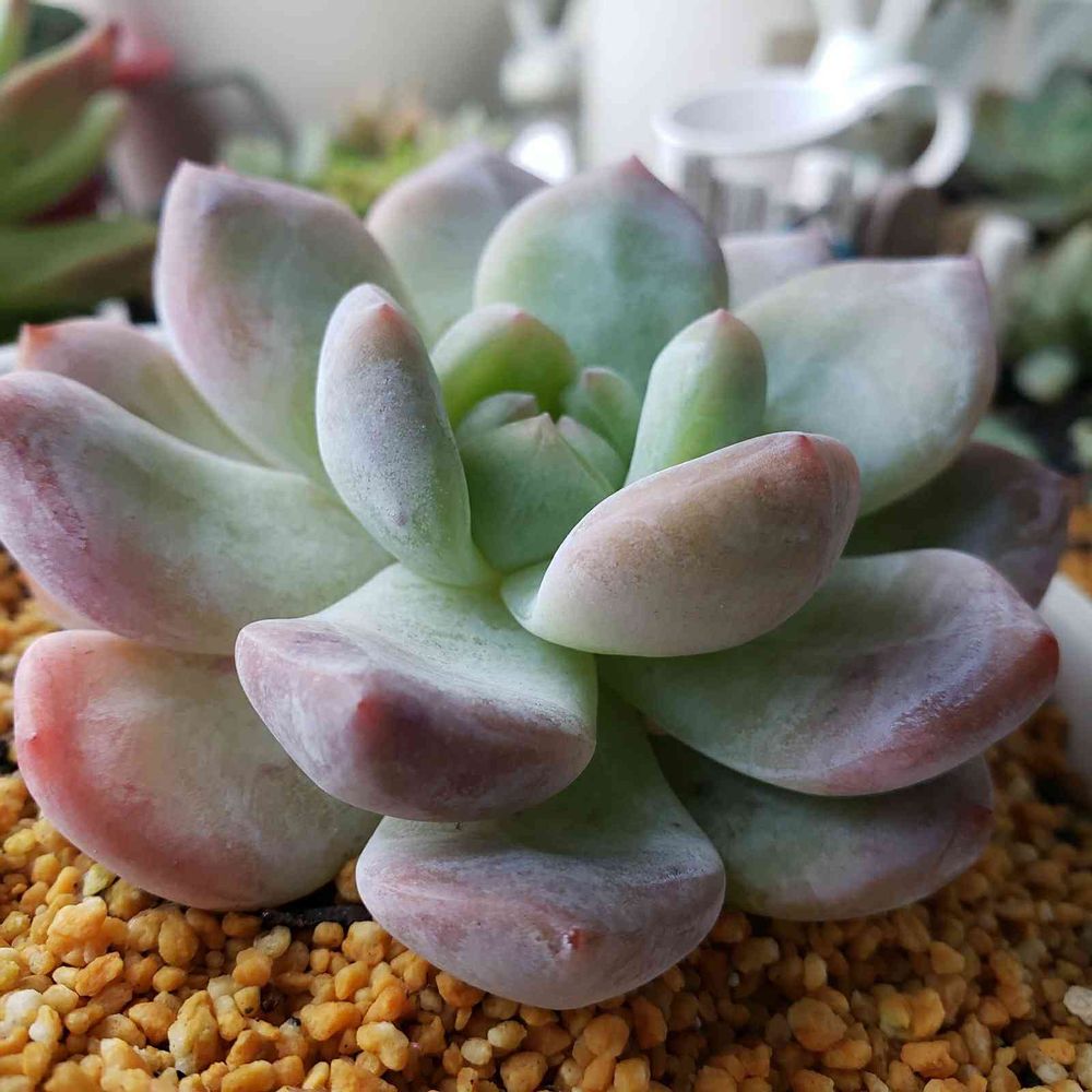 うちにも居たのですが、去年の夏にひどい葉焼けでダメになる寸前までやってしまいました😓 なんとか救出できたのですが、全体的に真っ白になり、ペラいラウリンゼのような感じに変身してしまいました😅 ぷくぷくのオレンジモンローの面影なしです😅