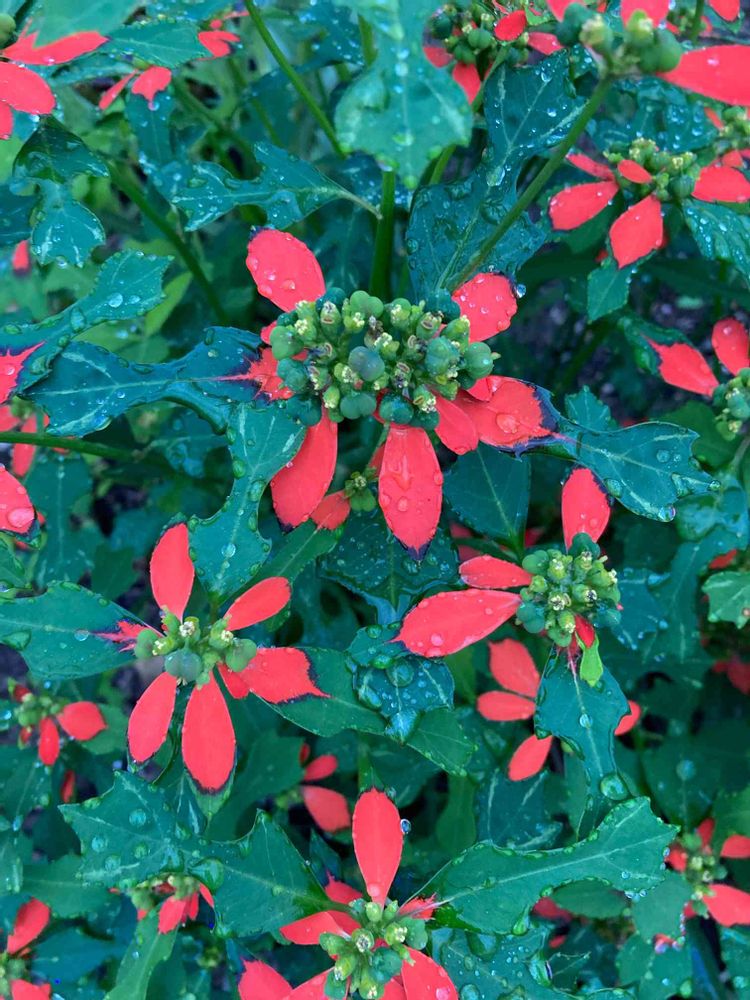 お出かけ先,ショウジョウソウ(サマーポインセチア),雨降りの投稿画像