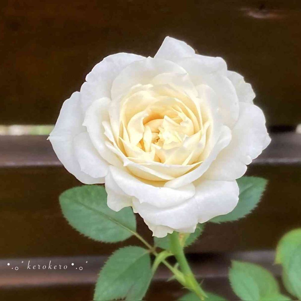 白いミニバラが久しぶりに咲きました。中央に淡いイエローが入ってます。
