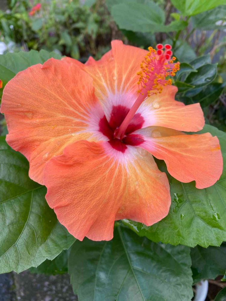 このハイビスカスさんもオレンジ色がきれいで元気になるわ🧡なんともいえない色合いを醸し出してますね。お名前もステキですね🧡✨