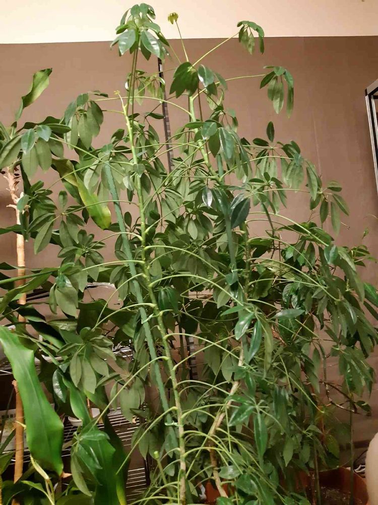 恒例になりましたミジメ‼️な植物 見たくないかも⁉️ 今日はカポック❗やはり日光、水、肥料、愛情不足❗ 🍀は窓側に向き茎は長く延び放題 身長もあります💓スレンダーであります✨BMIは❔